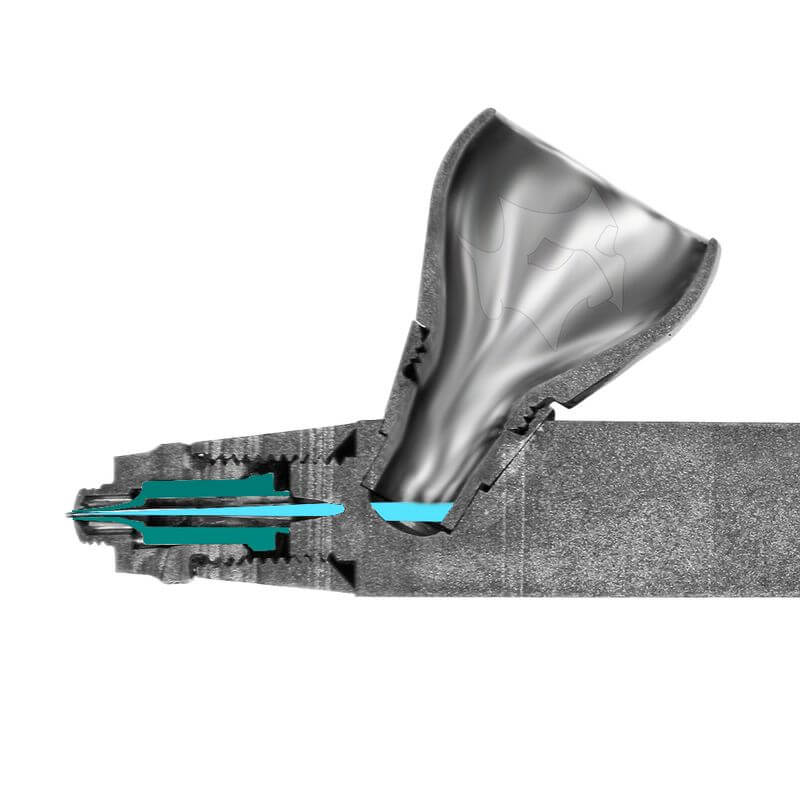 Besteht aus Nadel, Düse, Luftkopf.